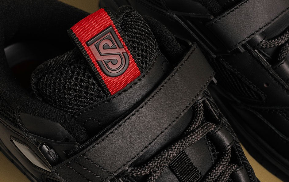 Shanahan Pro black shoes witha brown back drop